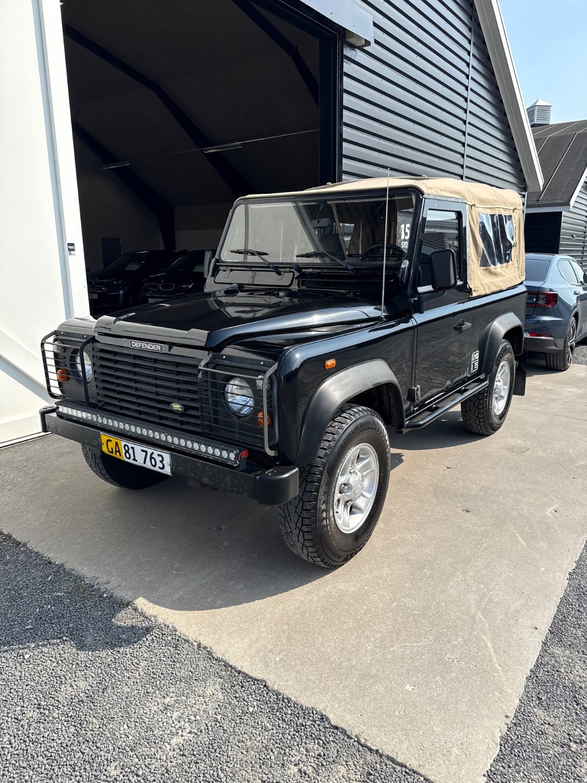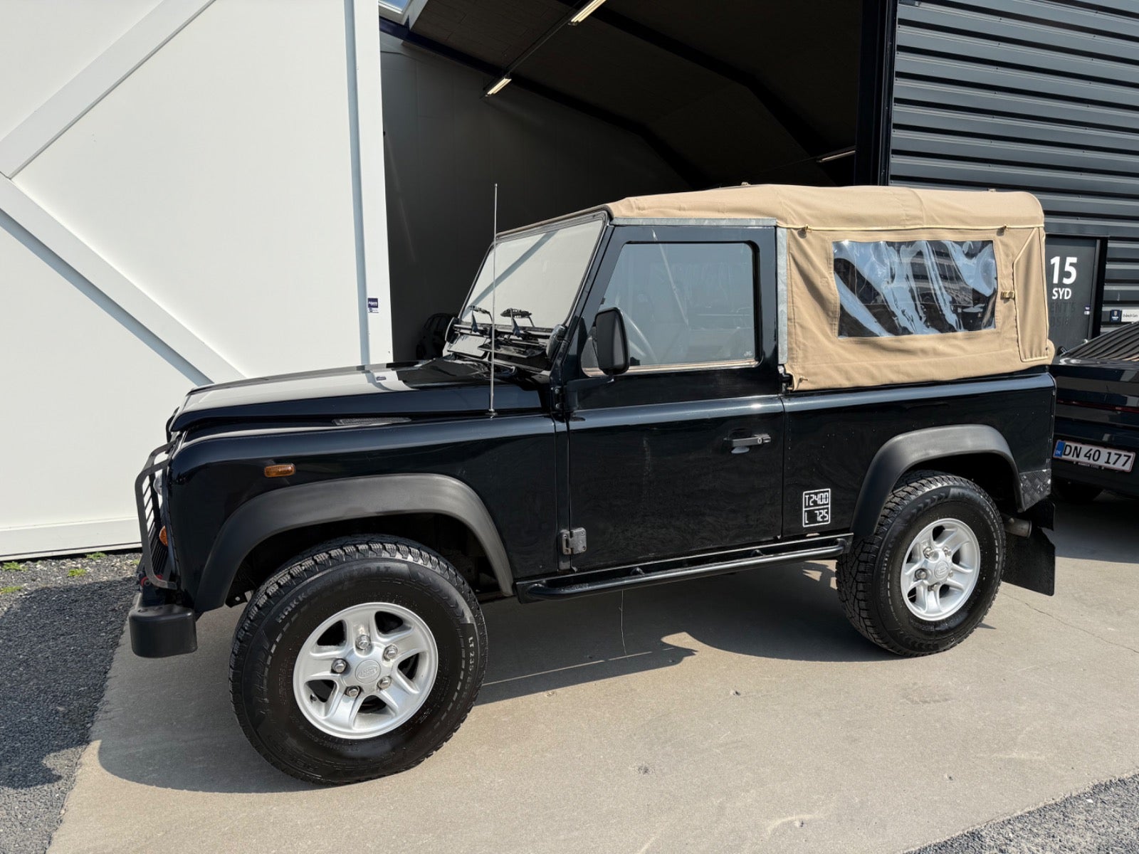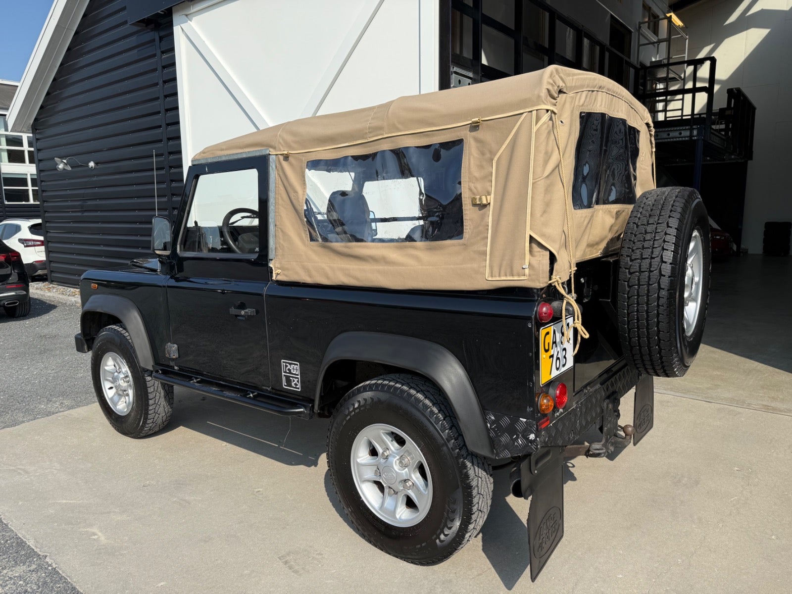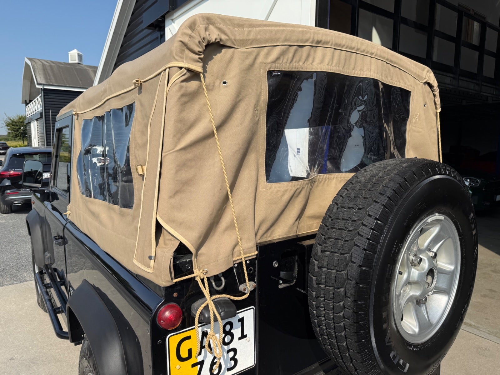 Her udbydes en Defender 90" med Softtop (Helt ny Sandfarvet Canvas Kaleche Fuld Længde Med Sideruder og Bagrude) - Bilen er Udstyret Med Partikel filter - 3 sæder foran (ej på billeder), Servo - Træk - Undervognsbehandlet Flere gange sidst 4/2024, Land Rover Reservehjul samt holder til bagklap monteret i 2024, Sidehængslet Bagklap Ligeledes Monteret i 2024 (Galvaniseret ramme), Bilen er inkl. moms, Sælges for kunde,