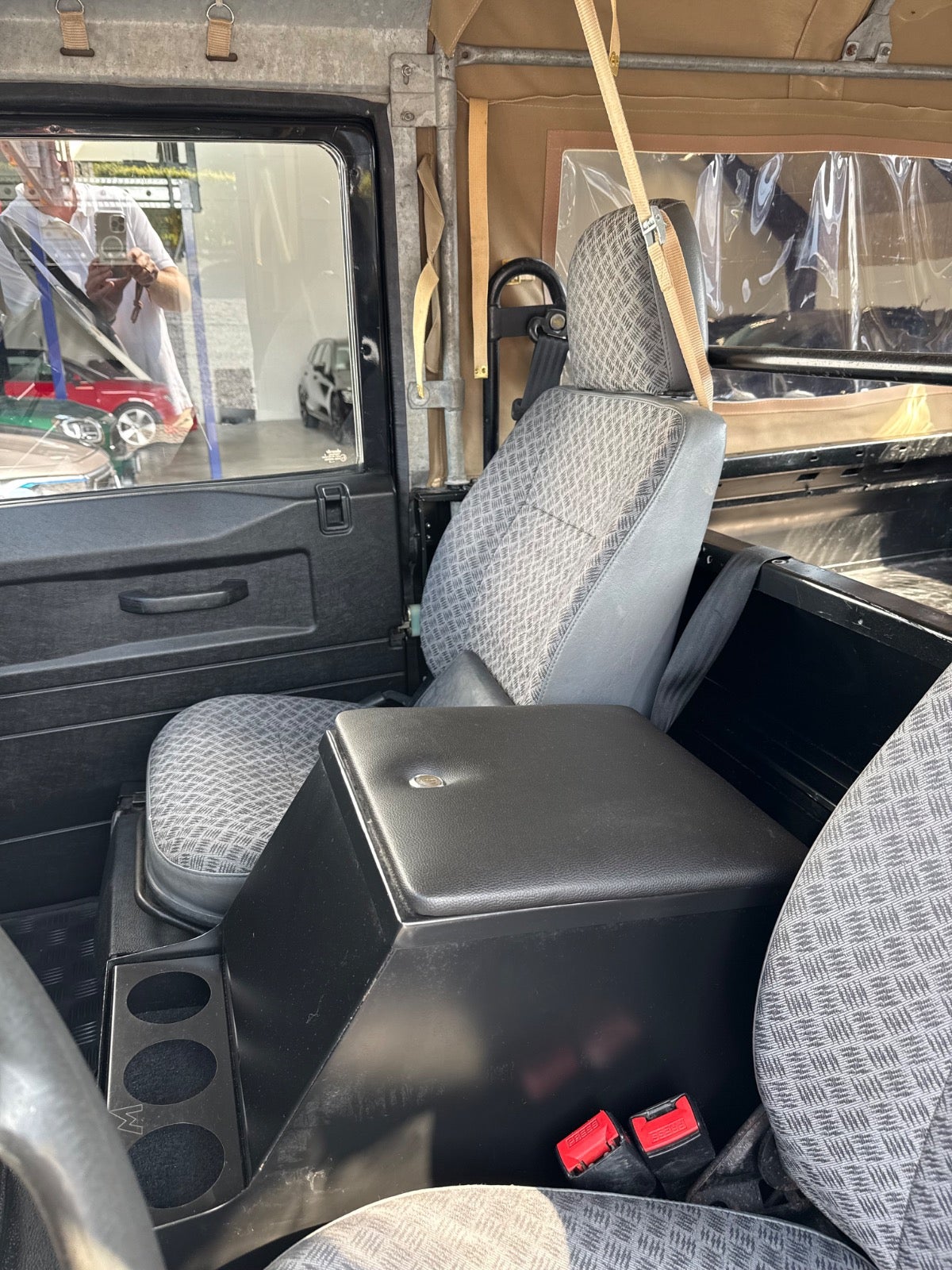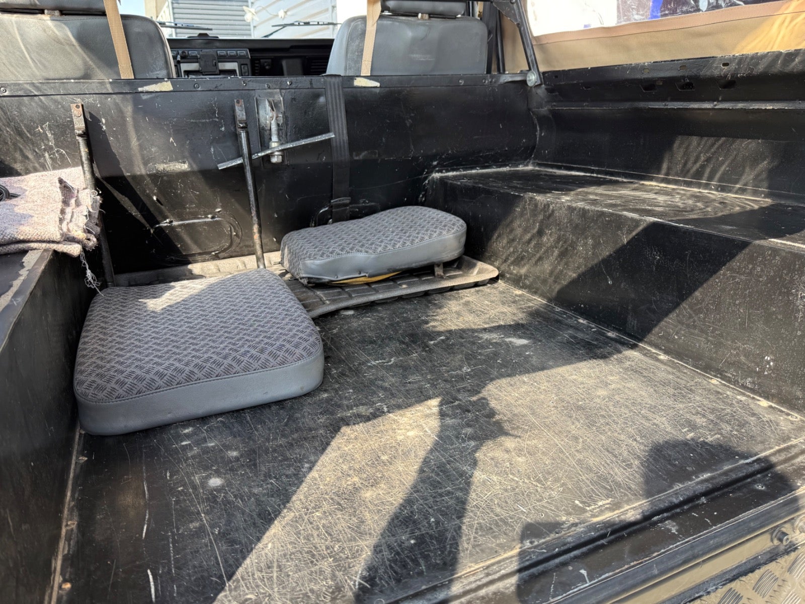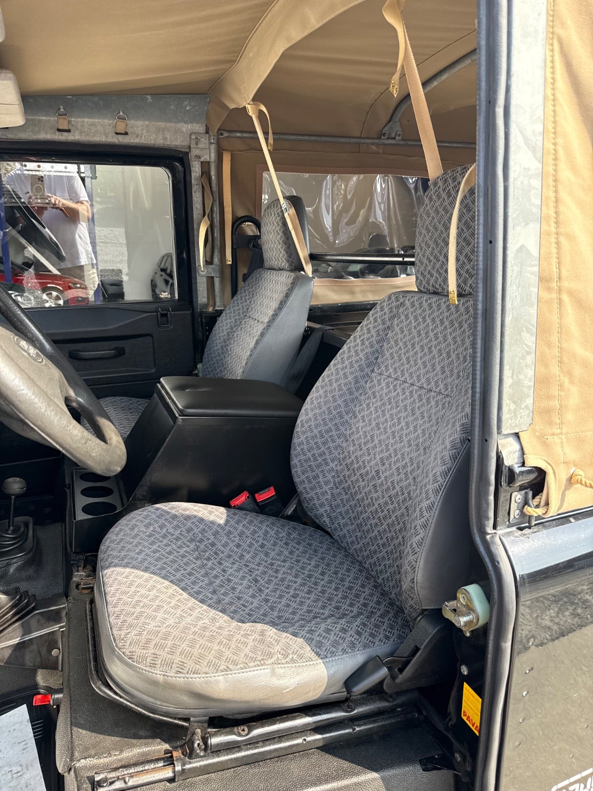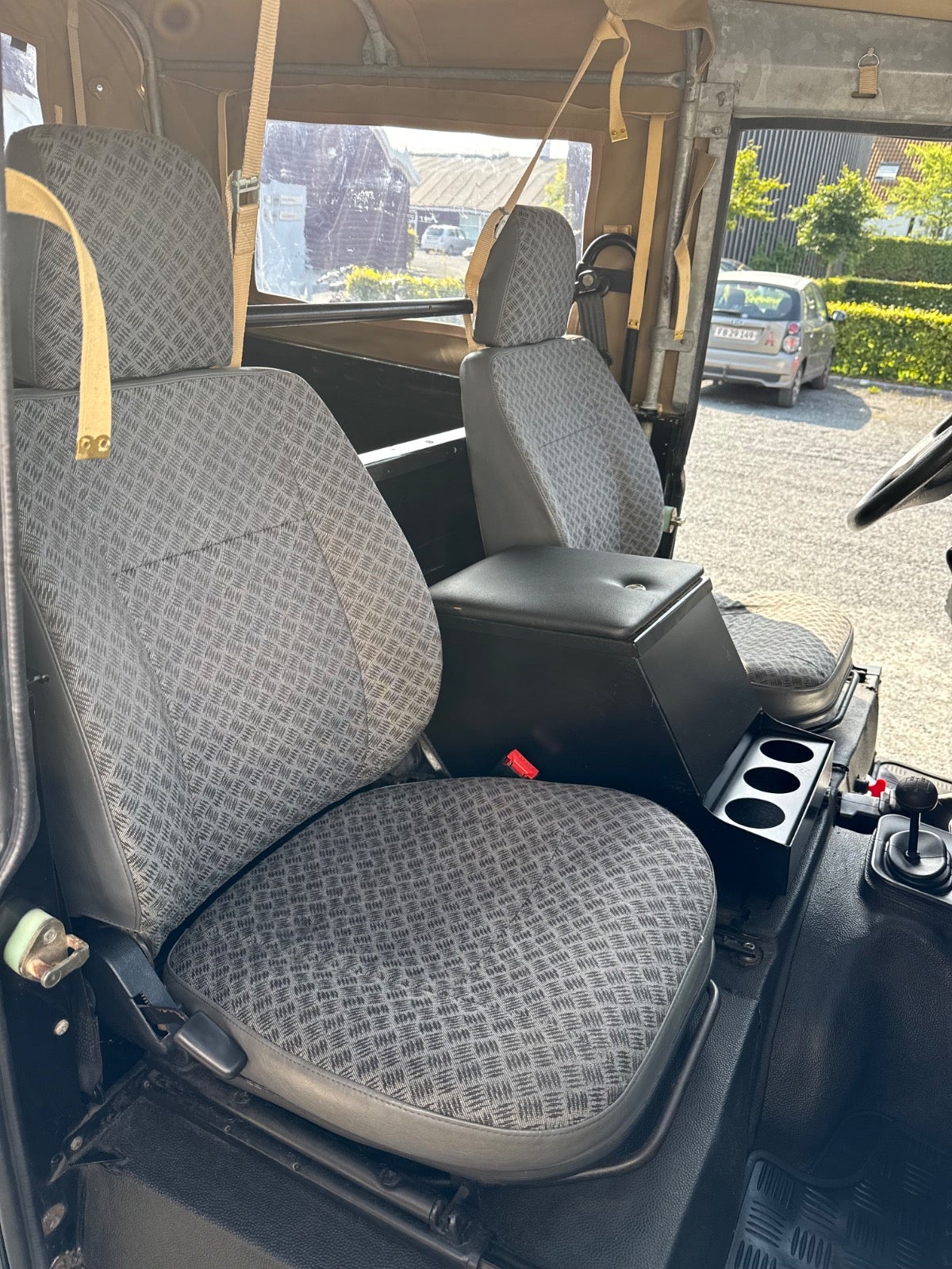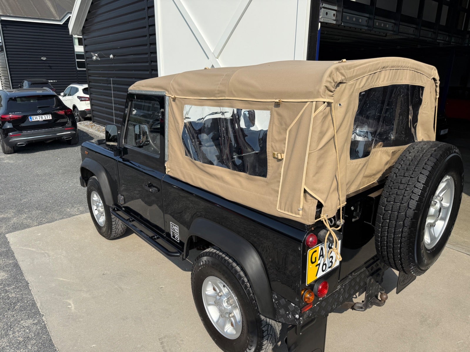 Her udbydes en Defender 90" med Softtop (Helt ny Sandfarvet Canvas Kaleche Fuld Længde Med Sideruder og Bagrude) - Bilen er Udstyret Med Partikel filter - 3 sæder foran (ej på billeder), Servo - Træk - Undervognsbehandlet Flere gange sidst 4/2024, Land Rover Reservehjul samt holder til bagklap monteret i 2024, Sidehængslet Bagklap Ligeledes Monteret i 2024 (Galvaniseret ramme), Bilen er inkl. moms, Sælges for kunde,