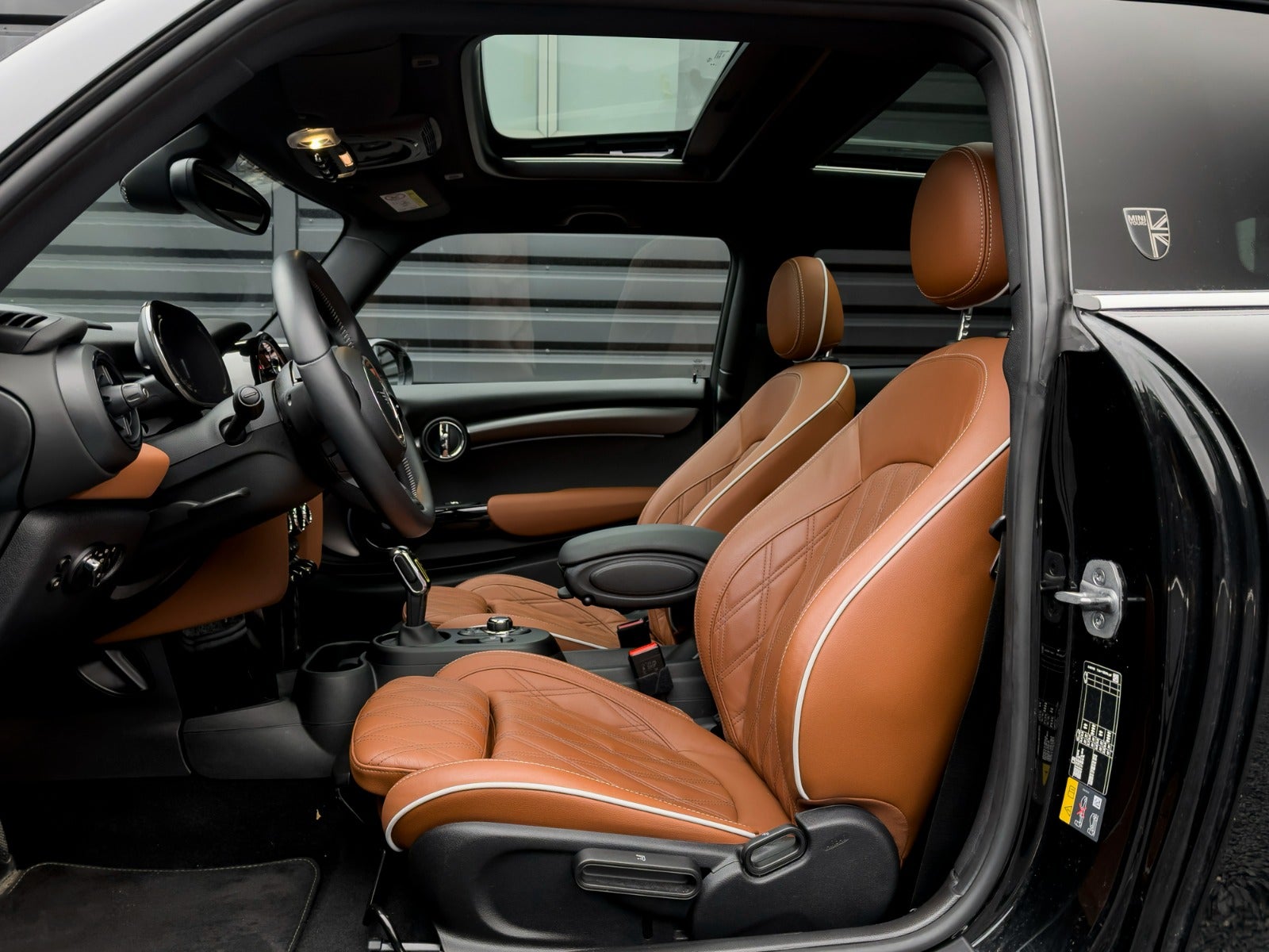 Bemærk den sjældne farvekombi og omfattende udstyrsliste!, Midnight Black Met., Læder Chester Malt Brown, El-Panoramaglassoltag, MINI 17" Alufælge Tentacle Spoke 500 Jetblack, Komfortadgang (Fuld Nøglefri Betjening), MINI Head Up Display, Spejlpakke, Bakkamera, Fabrikstonede Ruder i Bag, Varmepumpe, LED Lygter, LED Kørelys, Digital Instrumentering, Klima Automatik 2 Zoner, Sportssæder, Sort Lofthimmel, Opbevaringspakke, Park Assist, Driving Assistant, HIFI Harman Kardon, DAB Tuner, Lyspakke, Ambiente Interiør Lyspakke, Real Time Traffic, Smartphone Integrations Pakke, MINI Connected XL, Trådløs Opladning Af Mobil, Trådløs Apple Carplay, Skiltegenkendelse, Isofix, Younique Trim, Udvidet Fabriksgaranti til 11/4-2026,